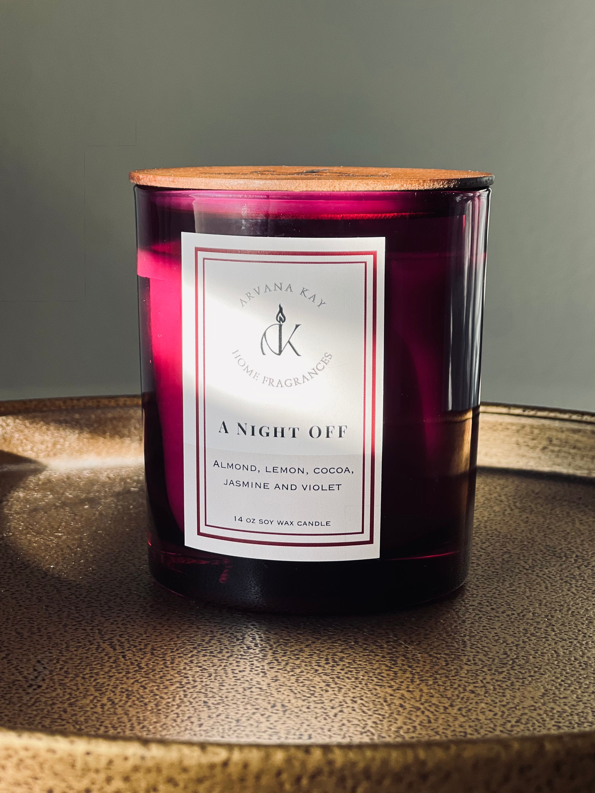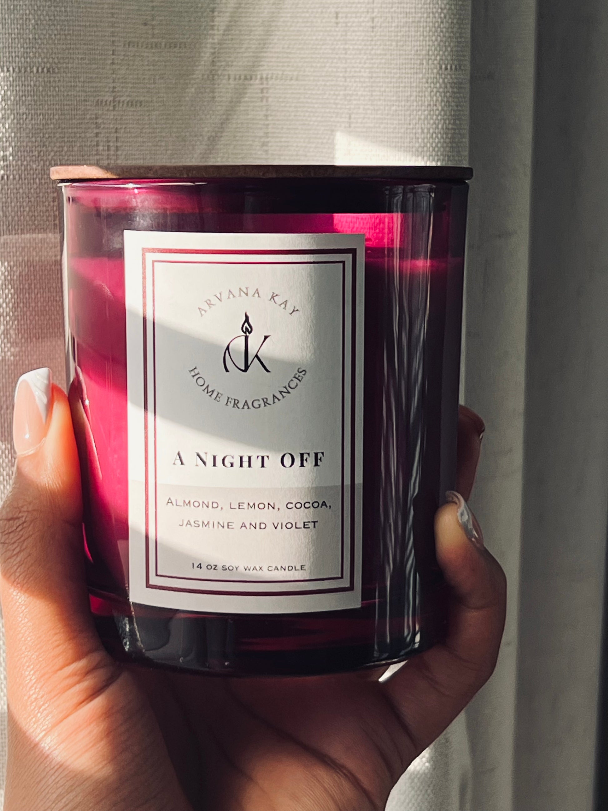 A Night Off is your permission to pause, to pour a glass, press play, and let the day melt away. It opens with notes of almond, coffee, bergamot, and lavender, blending into a lush heart of jasmine, rose, and orange blossom. The base lingers with tonka bean, musk, cacao, and cedar, wrapping the room in warmth and quiet indulgence.